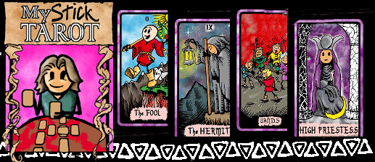 MySTICK TAROT: The Mystic Stick Figure Tarot Deck! This is a traditional 78 card tarot deck created from colorful stick figure imagery! It’s whimsically functional with traditional symbolism and imagery.